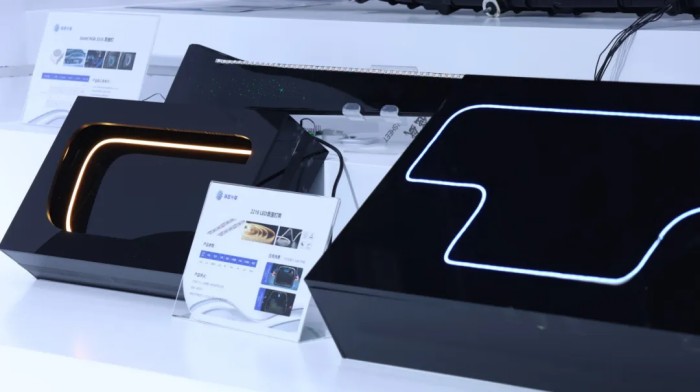 其中首次亮相的红旗超轻薄logo车标,吸引了众多观众关注,其采用单红光设计,发光均匀、亮暗可控,以极致纤薄与柔性灵活的特性,突破平面显示局限,兼具轻量化与低能耗;支持造型自由设计,有效提升汽车品牌辨识度。