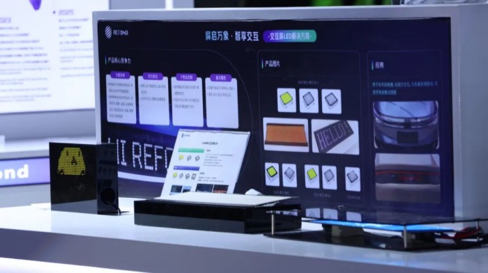 基于MiniLED直显技术,瑞丰光电在本次展会带来了像素车尾灯、像素车标等一系列创新显示应用,可实现细腻个性化显示、智能驾驶辅助、人车交互等功能;