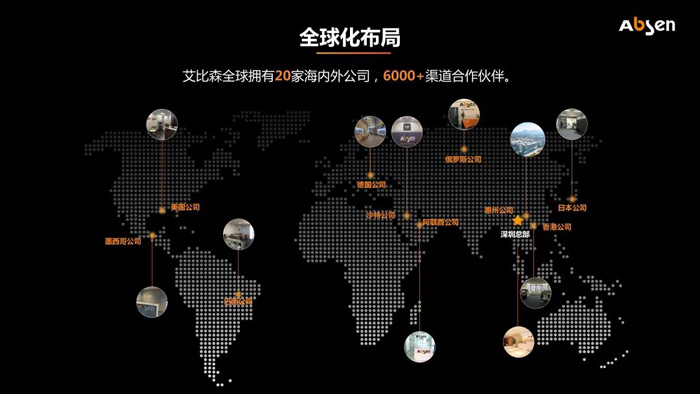 面对贸易壁垒、文化差异、服务需求多元化等多重挑战,艾比森深耕全球化销售布局,先后成立20家海内外公司构建起辐射超165个国家和地区的营销经纬,累计65,000+应用案例见证了其全球影响力。