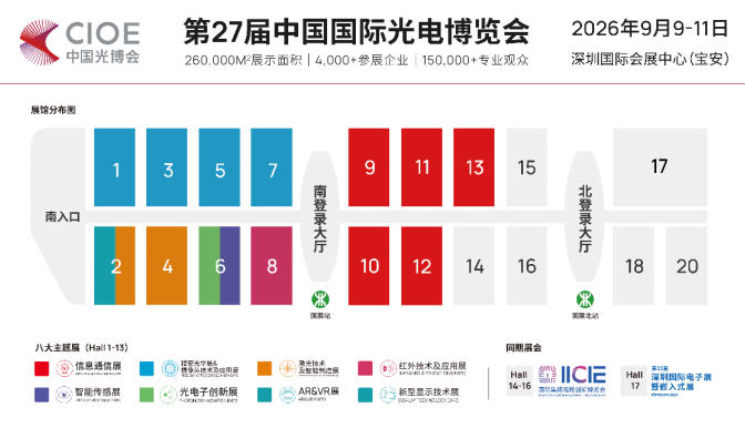 第二十七届中国国际光电博览会(CIOE中国光博会)将于2026年9月9-11日在深圳国际会展中心举办。作为覆盖光电全产业链的综合型展会,CIOE中国光博会汇聚了来自全球超30个国家和地区的超4000家的优质参展企业,覆盖信息通信、精密光学、摄像头技术及应用、激光及智能制造、红外、紫外、智能传感、新型显示、AR & VR、光电子创新等,从产业到终端应用,是助力寻找研发和生产制造中所需要的材料、器件、设备及解决方案的一站式高效采购平台。