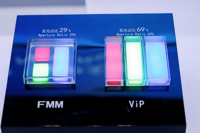 此次展会,维信诺ViP手表、手机、中尺寸笔电“全家桶”齐亮相。相较传统FMM AMOLED路径,ViP围绕超高性能、全域尺寸覆盖和敏捷交付建立起差异化优势:通过光刻像素技术路径,ViP无需担心掩模版形变问题,不仅可将像素密度提升至1700PPI以上、开口率由29%提升至69%,还可与Tandem叠层技术协同,进一步提升亮度和寿命。AI趋势下,ViP的价值不只在于性能提升,更在于为OLED适配VR/AR、平板、笔电、车载等更多应用场景提供了底层支撑。