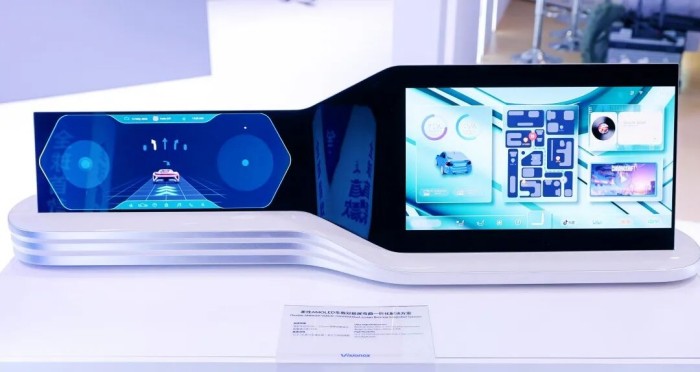 柔性AMOLED车载双联屏弯曲一体化方案实现最小R50冷弯半径和3.0mm超窄边框,兼顾视觉一体性与量产适配效率。