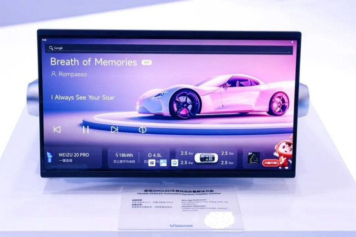 在智能汽车持续演进的背景下,车载显示从形态创新走向场景融合。维信诺首次展出系列车载显示新品:在形态层面,维信诺柔性AMOLED车载动态折叠解决方案通过内折半径仅3mm的柔性技术,让中控屏实现“用时展开、闲时收纳”,并已通过超10万次折叠测试;