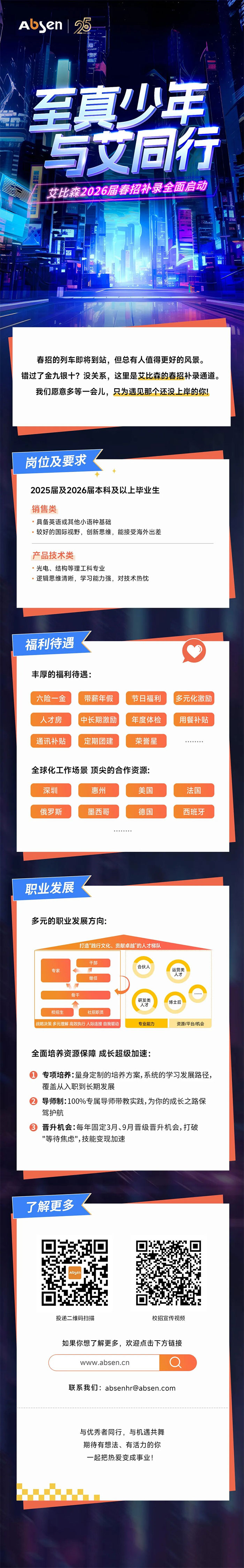 至真少年,与艾同行 | 艾比森2026届春招补录全面启动