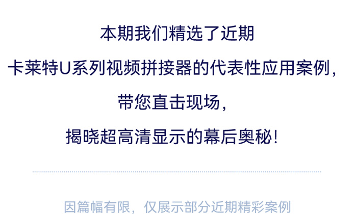 跨越大型会议中心与城市地标,打造沉浸空间与商业空间。卡莱特 Universe系列以旗舰级硬核架构为基石,依托行业领先的 AI 显控技术,持续突破显示边界,驱动极致视界的无限可能。