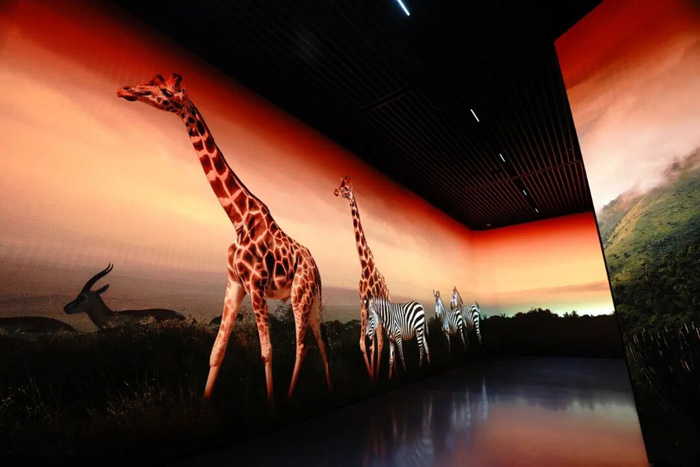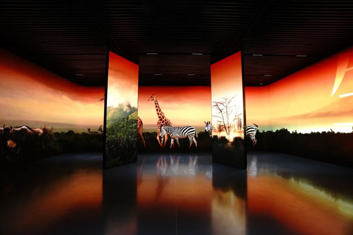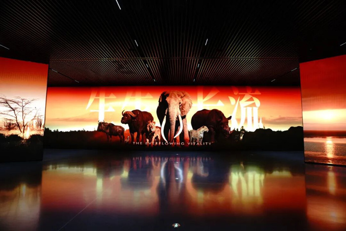 步入数字艺术馆的2楼,在灵动空间中,全球首部 17K 拍摄全景沉浸影片《生生长流》震撼上映,在全方位的视觉空间中,让每位观众沉浸在非洲大草原感受生命之美与蓬勃张力。