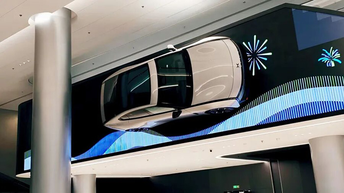 入口大厅:独特的环形巨幕环绕悬吊的实体汽车,打造出极具冲击力的视觉艺术中心。重磅发布现场:凭借极致稳定性与瞬时响应,完美承载“小鹏科技日”等系列新品发布会,确保每一场盛会万无一失。沉浸式展陈区:在开放活动与展厅空间,为汽车展示空间营造出强烈的科技感与未来感。