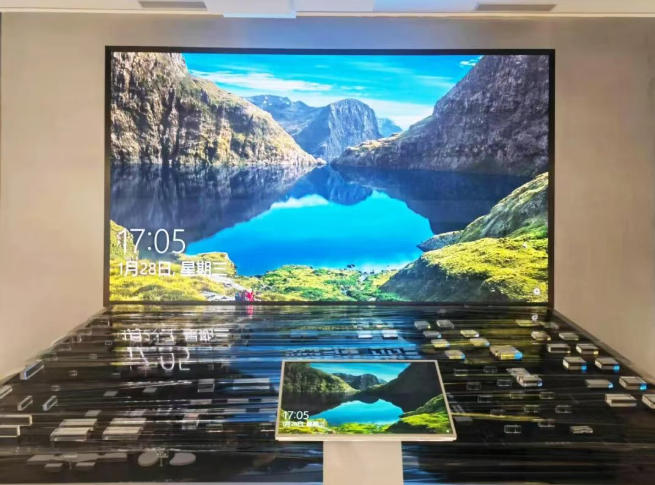 在园区的二楼大会议室里,AOC全彩P1.53 LED显示模组的部署有效保障了园区内各章大型主题会议的召开。该LED屏幕具有高分辨率、高像素的性能,让会议投影文件均能清晰细腻地展示,同时,该LED屏的高刷新率和高对比度,让现场无论是展示产业规划方案、播放企业宣传视频,还是进行远程视频会议,都能为与会者提供卓越的视觉体验。