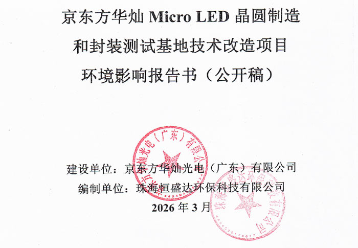 京东方华灿Micro LED晶圆制造和封装测试基地技改公示