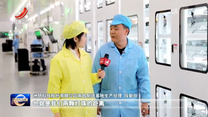 洲明科技股份有限公司南昌制造基地生产经理段勤田介绍:“最小间距可以做到0.4毫米,也就是我们两颗灯珠的距离,肉眼几乎是看不到的,每平方米大约有2500个像素点,目前属于mini Micro(LED)最顶级的系列。”