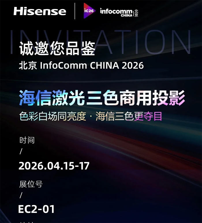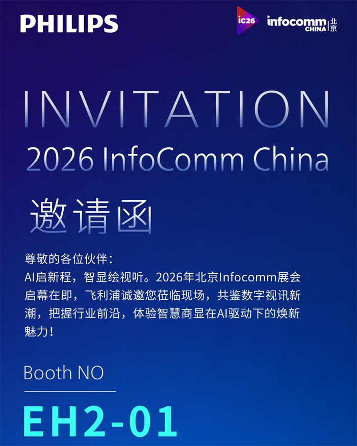 结语:北京InfoComm China 2026不仅是一场汇聚400余家企业、逾26000名专业观众的行业盛会,更是一次AI与视听科技深度交融的巅峰对话,一场重塑显示边界、解锁场景价值的创新盛宴。从利亚德Hi Micro技术重构显示生态,到洲明科技AM+MIP全息屏定义透明显示新体验;从飞利浦商显四大标杆新品引领场景智能升级,到海信激光三色投影破解行业画质痛点,再到索诺克“中国之光”彰显国产智造底气,每一家企业的亮相都承载着技术突破的初心,每一项新品的发布都勾勒着行业发展的蓝图。这里有硬核技术的碰撞,有创新方案的落地,有智慧科技的交锋,更有携手共赢的期许。4月15日—17日,北京国家会议中心,让我们共赴这场光影之约,见证视效科技的无限可能!