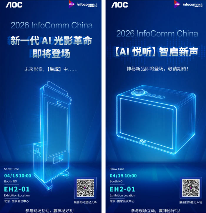 4月15日至17日,一年一度的北京InfoComm China 2026将在北京国家会议中心盛大举办。作为全球知名的显示设备提供商及品牌商,AOC已多届出席展会活动,而在本届展会上,AOC将紧扣“AI+”趋势,携旗下全新AI商显新品及多场景解决方案重磅亮相,从AI创新显示到沉浸式LED光影体验,从智慧零售、智慧办公到智慧矿业等多元应用场景,AOC始终以创新技术为基石,以场景落地为驱动,推动各个行业实现智慧升级与价值跃迁。