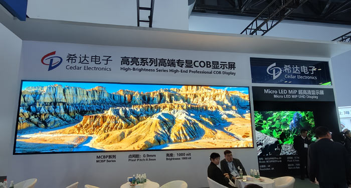 高亮系列为希达2026年发布的重磅新品,本次展出了2000-4000nit高亮系列商显屏、1000-1200nit高亮系列高端专显COB显示屏。凭借着高亮度优势,画面清晰度进一步提高,亮暗区细节饱满丰富。同时兼顾节能低耗,可实现7×24小时稳定运行,近屏亦无灼热感。