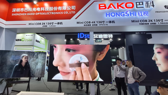 巴科光电重点展出了163英寸、136寸2K/4K Mini COB智能触控屏、1.25/1.53点间距COB模组等Mini COB LED显示解决方案。