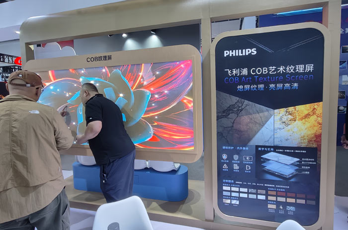 作为展区视觉核心,飞利浦飞晶系列 COB 巨幕震撼登场。192 英寸超大尺寸搭配2,000,000:1 超高对比度,无缝一体、深邃纯黑,配合 TrueVision 专业色彩管理,呈现影院级沉浸画质,满足高端会议、指挥中心、品牌展厅等专业场景需求。