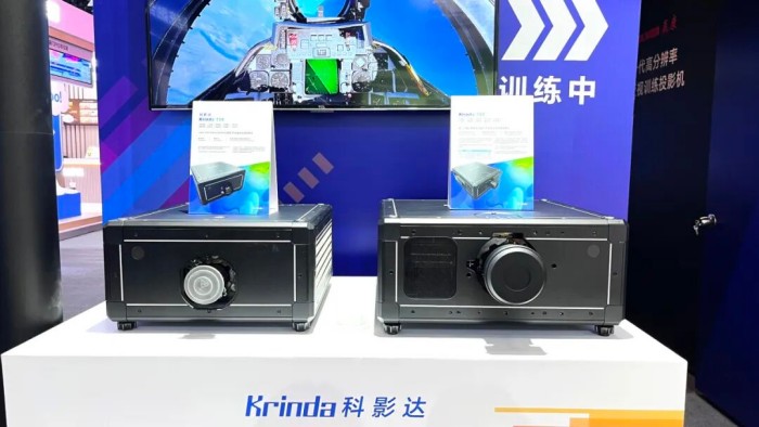 展会现场,还展示了科影达专业仿真投影机系列的另一款产品——科影达KrindaT20。这是一款为满足专业视景仿真应用进行设计和功能优化的新一代单DLP投影机,亮度8000流明,分辨率1920x1200,激光光源,使用寿命长达20000小时。它可实现超低黑电平输出;支持不低于3G加速度的运动平台兼容;支持各种复杂曲面多边融合;支持帧序列主动立体及立体信号倍频;全封闭式光机设计,适应恶劣工作环境。适用于产品研制,生产、研发模拟过程控制、优化,仿真训练,沉浸式展览展示等领域。