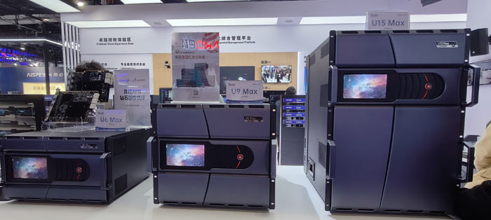 卡莱特U15 Max、U9 Max、U6 Max全场景拼控解决方案U 系列成为现场核心亮点。U9 Max内置昇腾 AI 算力模组,为拼控注入智能 “大脑”,支持智能画质优化、场景自适应调参、异常画面自动识别与实时呈现,重新定义旗舰级视频拼接器标准,可满足 63 路 4K 或等效 8 路 8K 信号随心拼接,应对超大场景显示需求。