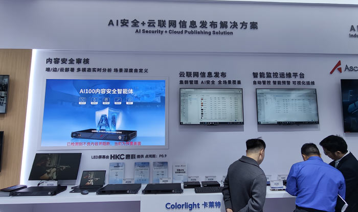 同时,卡莱特还展出了U 系列拼控系统、AI 智能分布式解决方案、AI安全+云联网信息发布系统、灵境可视化综合管理平台等全栈 AI 显控产品矩阵及场景化解决方案。