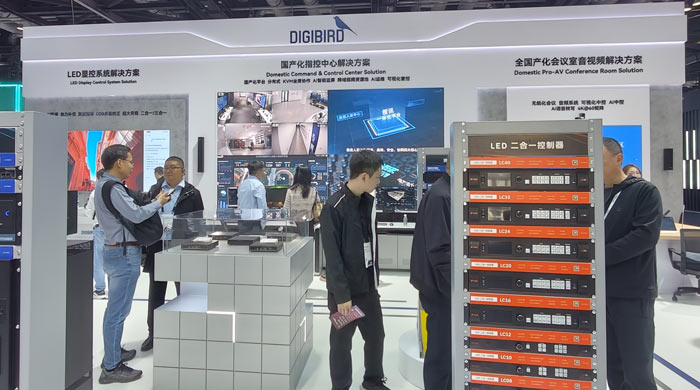 小鸟科技携指挥中心、会议室、LED 显控系统、AI 创新技术赋能解决方案亮相,凭借全国产化的产品体系与全链路的显控解决方案,融合 AI 创新技术与音视频行业场景化应用,以硬核的国产科技实力与沉浸式的体验展示,为行业伙伴带来全方位的专业视听解决方案。