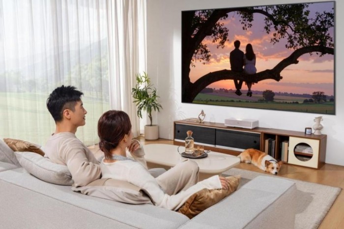 海信星光S2纯享版不仅颜值在线,更以“轻薄省空间”的设计巧思满足现代家居需求。其主机体积较上代缩小33%,多种电视柜都能轻松安放,不挑场景更省空间;100吋屏幕更是薄至1.7cm,纯平背板实现“真·零缝隙”贴墙;18kg超轻机身可以直接安装在普通石膏板隔墙上,无需提前加固、改造墙面。此外,数字画廊功能让其屏幕待机时能显示艺术画作、家庭照片、自然风景等,开机即是影院,关机亦是装饰,完美适配当下流行的极简、法式、奶油、中式美学等多种家装风格。