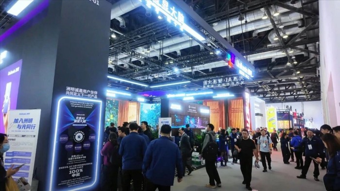 洲明团队在主屏区域全球首发“AI音视频智能体平台”及多款新品。