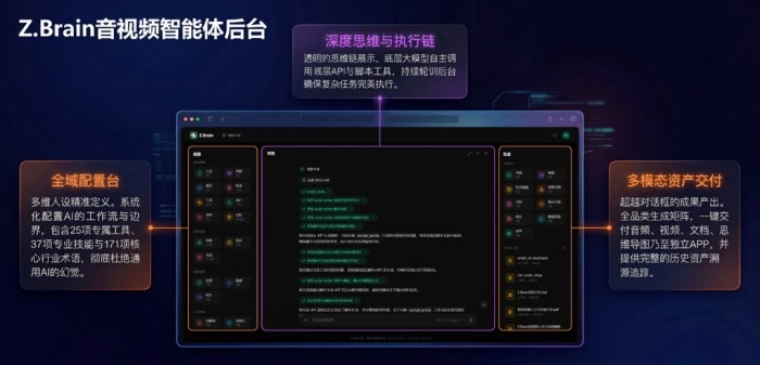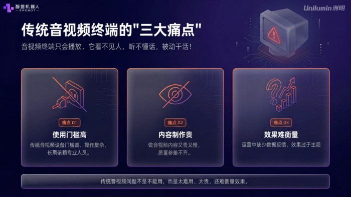 本次展会,洲明全球首发【音视频智能体平台】。传统的音视频终端,屏幕可以播放内容,但它不会感知、不会思考、不会服务,没有场景意识,我们给传统终端植入“智脑(Zbrain)”,赋予屏幕空间感知能力,让屏幕知道自己在哪、周围有谁,它不再是一个冷冰冰的显示屏,而是一个“活”的、能主动提供服务的智显机器人。