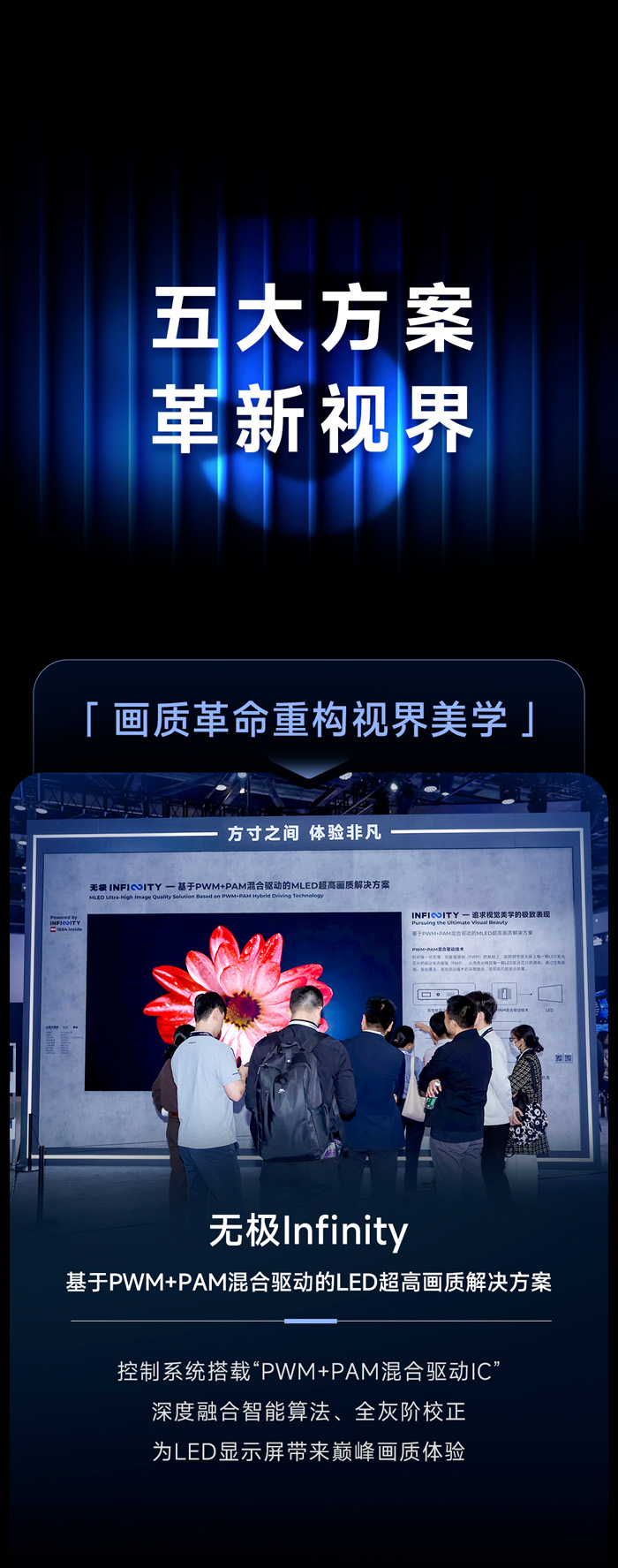 控制系统搭载“PWM+PAM混合驱动IC”深度融合智能算法、全灰阶校正为LED显示屏带来巅峰画质体验