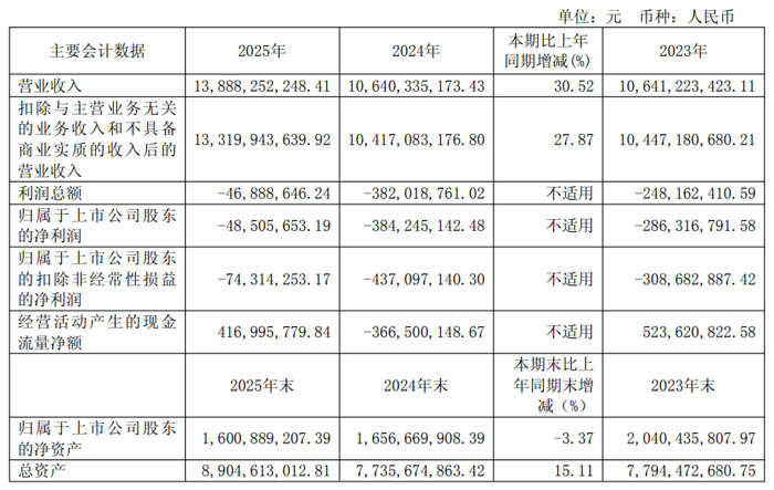 4 月 15 日,福建福日电子股份有限公司(股票代码:600203,简称 “福日电子”)披露 2025 年年度报告。报告显示,公司全年实现营业收入138.88 亿元,同比增长30.52%;归属于上市公司股东的净利润为 -0.49 亿元 ,较 2024 年大幅减亏,经营活动产生的现金流量净额由负转正,整体经营质量持续改善。