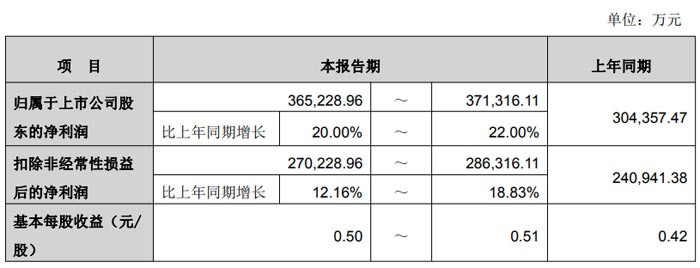 财务数据方面,立讯精密本报告期归属于上市公司股东的净利润预计为36.52 亿元至 37.13 亿元,上年同期为 30.44 亿元,同比增长 20.00% 至 22.00%;扣除非经常性损益后的净利润预计为27.02 亿元至 28.63 亿元,上年同期为 24.09 亿元,同比增长 12.16% 至 18.83%;基本每股收益预计为 0.50 元 / 股至 0.51 元 / 股,上年同期为 0.42 元 / 股。