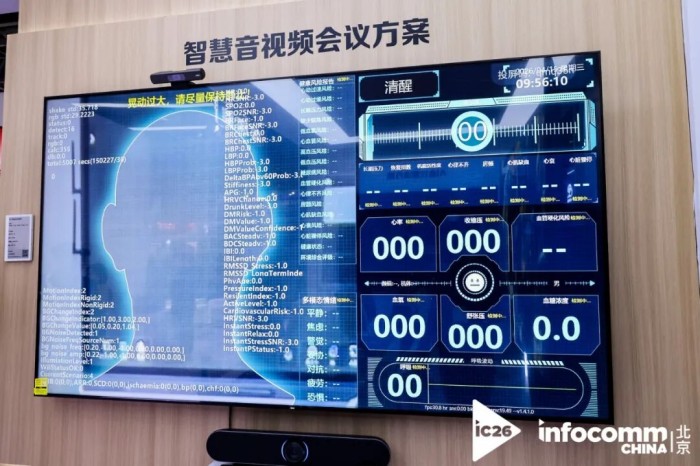 展会现场,AOC智慧会议屏内置的智能大健康筛查仪成为亮点。该系统采用“AI智能+传感器”组合,可快速实现无感健康监测与用户情绪分析,在社区健康筛查、高风险岗位情绪监测等场景中具有实用价值。
