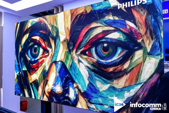 目前,AOC与飞利浦双品牌已实现从SMD到COB的全线产品矩阵布局,同时MIP、COG等高端产线也在持续迭代。AOC主打节能可靠与高性价比,聚焦可视化集控与智能运维,提供普惠落地的集成显示方案;飞利浦则依托TrueVision(专业色彩管理)、SmartPower(智能节能)、DLHM(显示屏全生命周期健康管理)等专利技术,以及融合纹理屏等艺术美学产品,致力于打造高品质的专业视觉空间。双品牌战略有效推进了冠捷科技全产品链路布局,使其成为全球商显行业发展的重要力量。