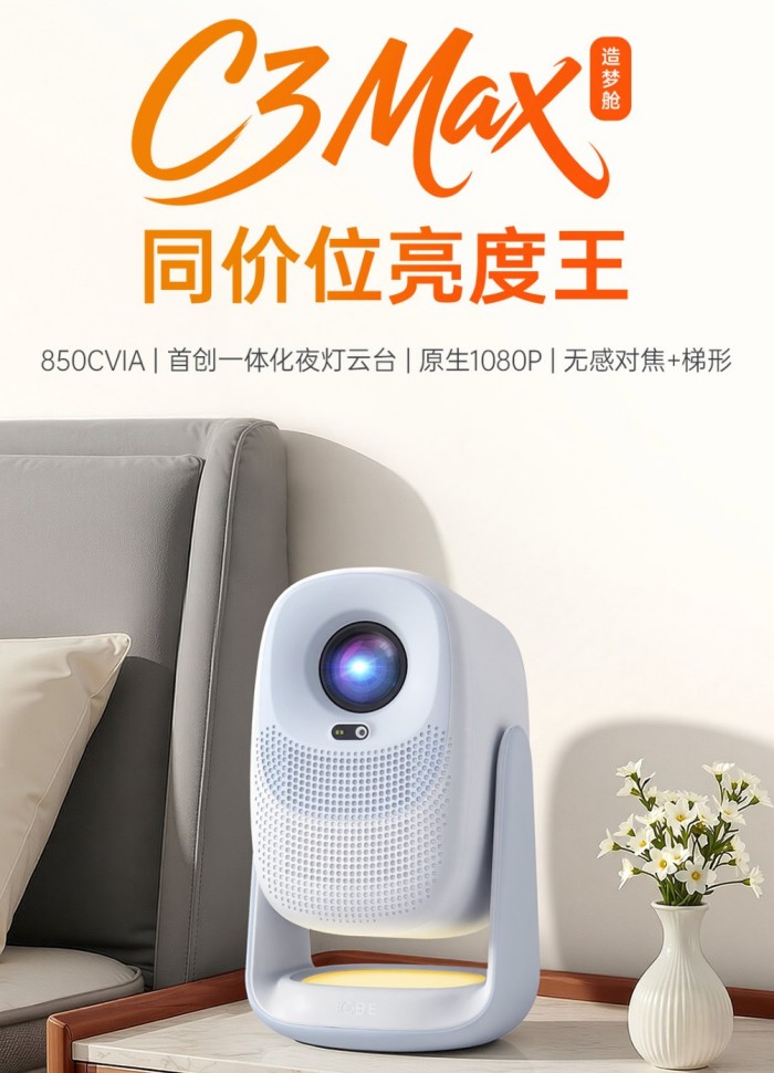 该产品亮度为850 CVIA,静态对比度3000:1,配合视频图像增强引擎与边缘增强技术,画面清晰通透,满足日常观影、追剧等基础娱乐需求。C3 Max配备3片全玻璃镜头,画质稳定不易虚焦;支持无感自动对焦与自动梯形校正,操作简单易用,新手也能快速上手。