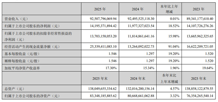 2026 年 4 月 18 日,杭州海康威视数字技术股份有限公司(股票代码:002415)正式发布 2025 年年度报告。报告显示,公司全年实现营业收入925.08 亿元,归属于上市公司股东的净利润141.95 亿元,同比增长18.52%,经营质量与盈利能力同步提升,智能物联主业与创新业务协同发展格局持续巩固。