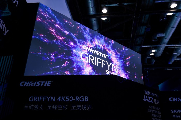 高亮度RGB纯激光投影技术树立行业画质新标杆。现场展出的Griffyn 4K50-RGB纯激光投影机,以50000流明亮度与98% Rec.2020超广色域覆盖,完美呈现大型投影映射、主题公园、文旅演艺的视觉冲击力。该系列支持4K分辨率120Hz、2K分辨率480Hz高帧率输出,搭载Christie Twist几何校正与边缘融合功能,配合Christie Mystique自动化图像校正方案,大幅简化多机投影系统的安装、调试与运维流程,解决大型光影项目的落地痛点。