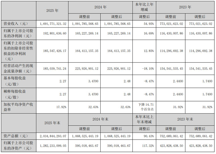 报告期内,弘景光电实现营业收入16.92 亿元,同比增长 54.95%;归属于上市公司股东的净利润1.93 亿元,同比增长 16.69%;归属于上市公司股东的扣除非经常性损益的净利润1.86 亿元,同比增长 12.85%。经营活动产生的现金流量净额1.85 亿元。