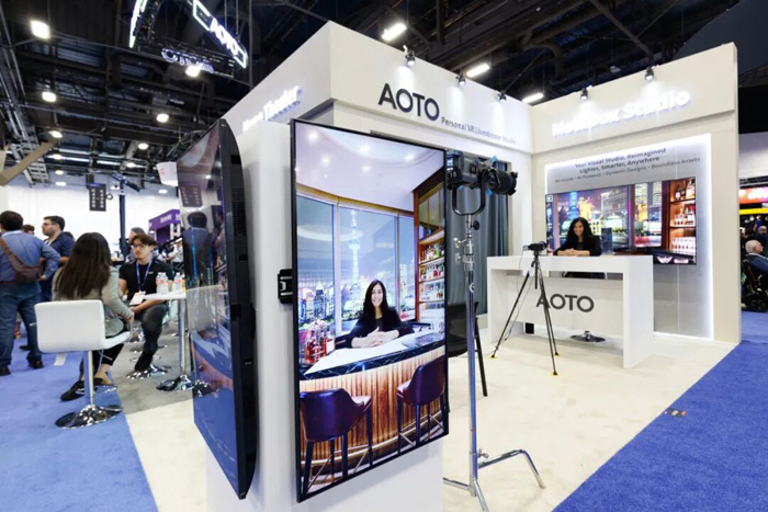 奥拓电子展位上,最受关注的MetaBox Studio小型智能直播解决方案,整合了显示、拍摄等多种功能,无需大型影棚和复杂团队,普通人也能开展专业直播。