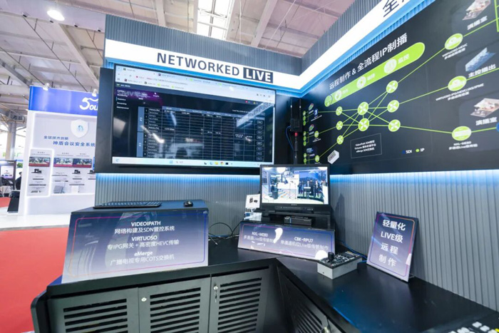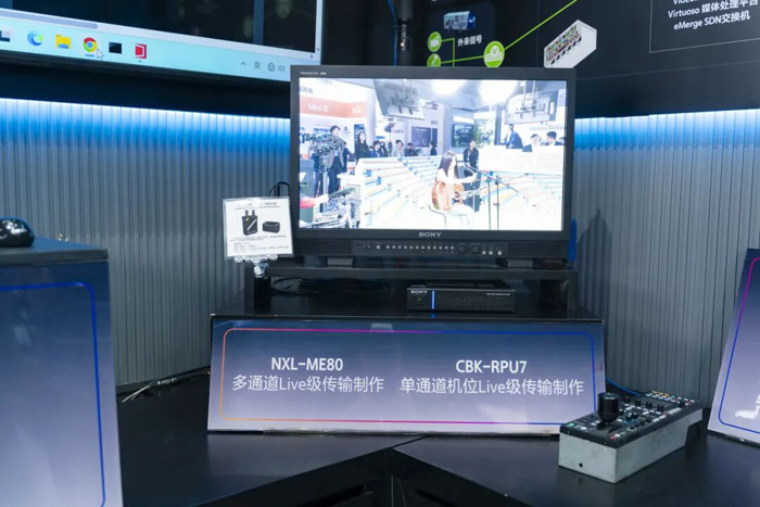 在全流程IP化方面:索尼重点展示了Networked Live全流程网络化制播解决方案,三大核心组件中新升级的VideoIPath系统强化了安全、兼容、管控等核心优势,优化了操作界面并实现90%以上菜单中文汉化,多种新驱动等功能,可统筹管理索尼及第三方产品,同时搭配Virtuoso全功能媒体处理平台,重点展示其专业IPG网关能力,实现音视频高效处理。同时升级了新功能--新增高性能HEVC编解码能力,支持SRT传输,与NXL-ME80产品组合,进一步提升索尼制作级传输方案的适配性与实用性。
