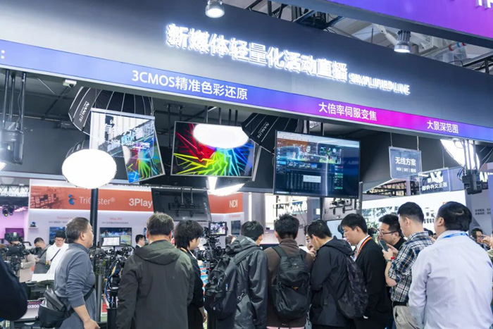 其中,3CMOS精准色彩还原、大倍率伺服变焦、大景深拍摄、电影感色彩科学混合使用、无级ND滤镜等传统核心优势,均在此展示区实现强化呈现与沉浸式体验,让客户近距离感受设备的专业实力。