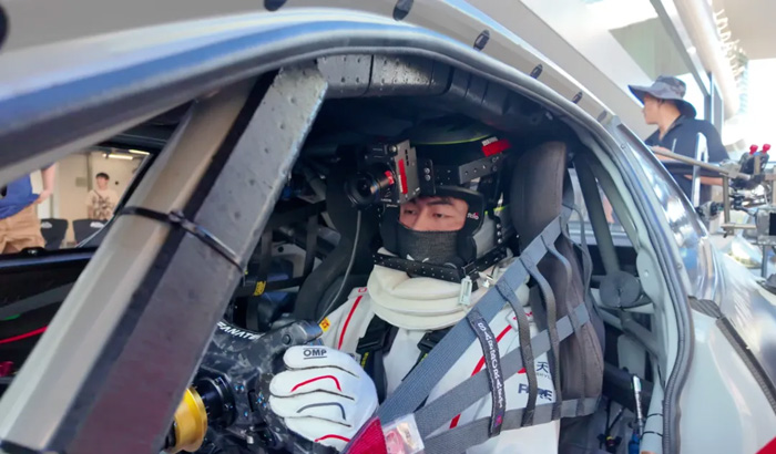 《飞驰人生3》拍摄现场狭窄逼仄的车内空间,车手头部装载分体mini拍摄第一视角