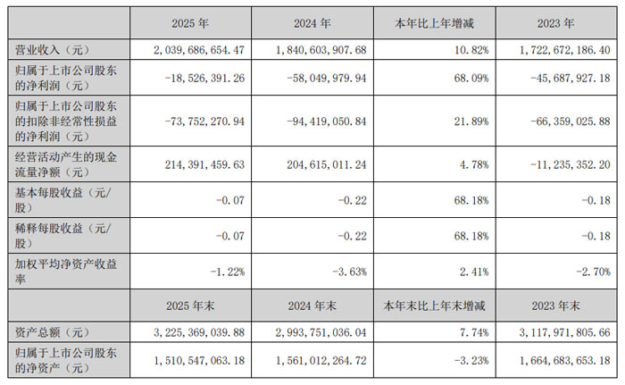 2025 年,苏大维格坚持技术创新与市场拓展双轮驱动,整体经营稳步向好。公司全年实现营业收入20.40 亿元,较上年同期增长10.82%;营业利润 -3566.54 万元,利润总额 -1289.72 万元 ,归属于上市公司股东的净利润 -1852.64 万元,较上年同期减亏幅度高达68.09%。