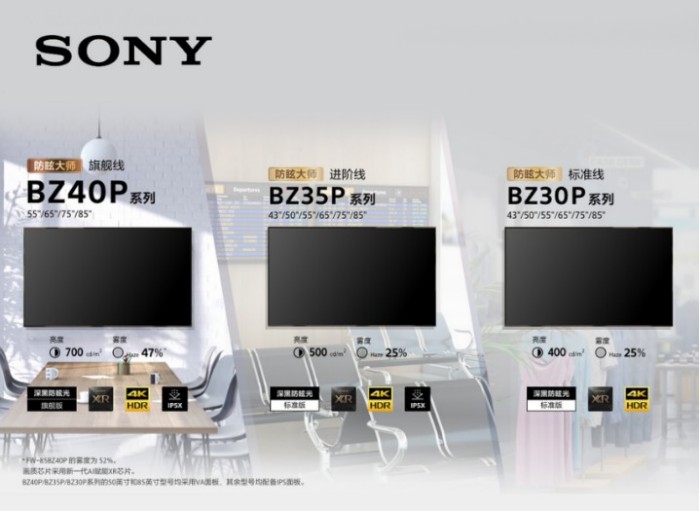 商用显示作为数字信息交互的核心载体,已深度渗透企业办公、零售营销、交通枢纽、专业直播、工业生产等千行百业。据行业数据显示,2025年全球商用显示市场规模突破2500亿美元,中国市场以18%的年复合增长率领跑全球。随着应用场景不断细分,用户需求已从“能显示”升级为“显示好、易安装、够稳定、易运维”的综合体验要求。在此背景下,索尼2026年商用显示产品全线推出“防眩大师”系列商用显示器 BZ40P/BZ35P/BZ30P,凭借行业领先的防眩显示技术、专业级色彩画质表现、极致纤薄的全场景灵活安装设计、7×24小时高可靠性运行、智能化生态运维体系等核心优势,精准破解不同商用场景痛点,为各行业数字化升级提供标杆级解决方案。