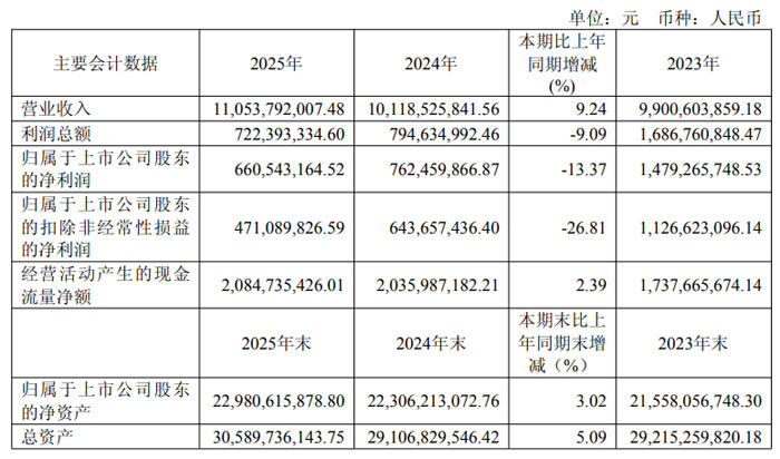 4 月 25 日,华润微(688396)发布 2025 年年度报告。报告显示,2025 年公司经营稳健,全年实现营业收入 110.54 亿元,同比增长 9.24%;归属于上市公司股东的净利润 6.61 亿元,经营活动产生的现金流量净额 20.85 亿元,期末总资产达 305.90 亿元,归属于上市公司股东的净资产 229.81 亿元。