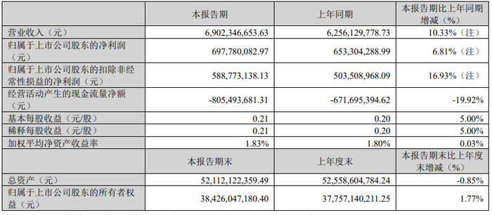 2026 年第一季度,大华股份实现营业收入 69.02 亿元,较上年同期的 62.56 亿元同比增长 10.33%;归属于上市公司股东的净利润 6.98 亿元,同比增长 6.81%;归属于上市公司股东的扣除非经常性损益的净利润 5.89 亿元,同比增长 16.93%,核心盈利能力持续增强。