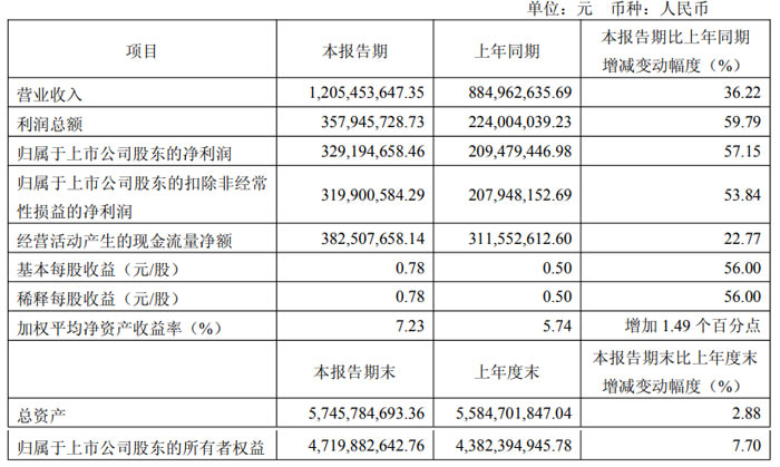 2026 年第一季度瑞芯微实现营业收入12.05 亿元,较上年同期的 8.85 亿元同比增长 36.22%;利润总额3.58 亿元,同比增长 59.79%;归属于上市公司股东的净利润3.29 亿元,同比增长 57.15%;归属于上市公司股东的扣除非经常性损益的净利润3.20 亿元,同比增长 53.84%。