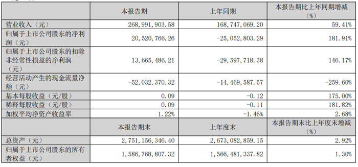 报告显示,2026 年第一季度,富满微实现营业收入 2.69 亿元,较上年同期的 1.69 亿元同比增长 59.41%;归属于上市公司股东的净利润为 2052.08 万元,上年同期为亏损 2505.28 万元,同比增长 181.91%;归属于上市公司股东的扣除非经常性损益的净利润为 1366.55 万元,上年同期为亏损 2959.77 万元,同比增长 146.17%。基本每股收益为 0.09 元 / 股,上年同期为 - 0.12 元 / 股,同比增长 175.00%;加权平均净资产收益率为 1.22%,较上年同期的 - 1.46% 提升 2.68 个百分点。