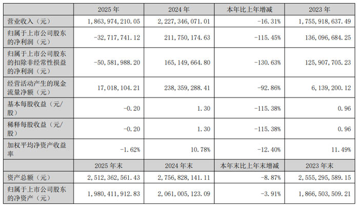 2026 年 4 月 28 日,天键股份正式对外发布 2025 年年度报告。报告期内,天键股份实现营业收入 18.64 亿元,同比下降 16.31%;归属于上市公司股东的净利润为 - 0.33 亿元,同比下降 115.45%;归属于上市公司股东的扣除非经常性损益的净利润为 - 0.51 亿元,同比下降 130.63%。
