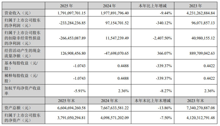 2025 年,国科微实现营业收入 17.91 亿元,同比下降 9.44%;归属于上市公司股东的净利润为 - 2.33 亿元,扣除非经常性损益后的净利润为 - 2.66 亿元。经营活动产生的现金流量净额为 1.27 亿元,同比增长 366.07%。截至 2025 年末,公司资产总额 66.05 亿元,归属于上市公司股东的净资产 37.91 亿元。