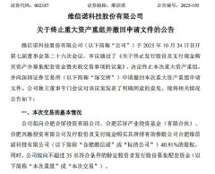 2025 年 10 月 24 日,维信诺科技股份有限公司(证券代码:002387,证券简称:维信诺)召开第七届董事会第二十六次会议,审议通过终止发行股份及支付现金购买资产并募集配套资金暨关联交易事项的议案,决定终止本次重大资产重组…详情>>