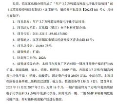 2025 年 11 月 19 日,江阴江化微电子材料股份有限公司(证券代码:603078,简称 “江化微”)发布项目进展公告,其全资子公司江化微(镇江)电子材料有限公司(简称 “镇江江化微”)投资的 “年产 3.7 万吨超高纯湿电子化学品项目” 已顺利取得《江苏省投资项目备案证》(备案证号:镇经开审批发备【2025】861 号),标志着该扩建项目正式进入…详情>>