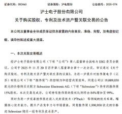 公司于 11 月 20 日召开第八届董事会第十一次会议,审议通过关联交易议案,拟以 1900.905 万欧元收购关联方 Schweizer Electronic AG.(简称 “Schweizer”)持有的胜伟策电子(江苏)有限公司(简称 “胜伟策”)15% 股权,并由胜伟策以 199.095 万欧元收购 Schweizer 旗下一组核心专利及技术资产,两项交易合计金额超 2100 万欧元。 …详情>>